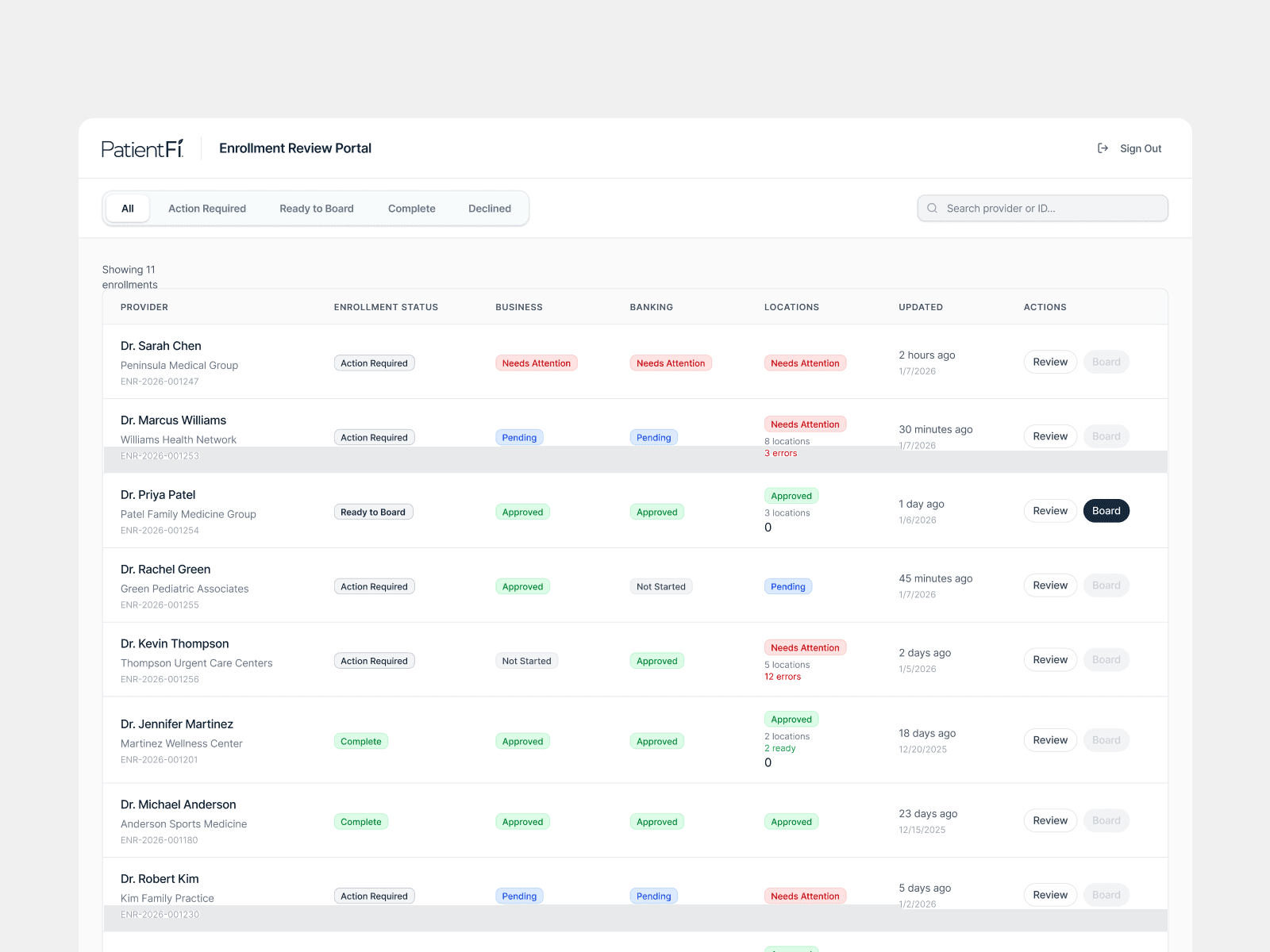 We introduced a dedicated Enrollment Portal that replaced manual tracking and served as the authoritative view of every provider’s enrollment state.