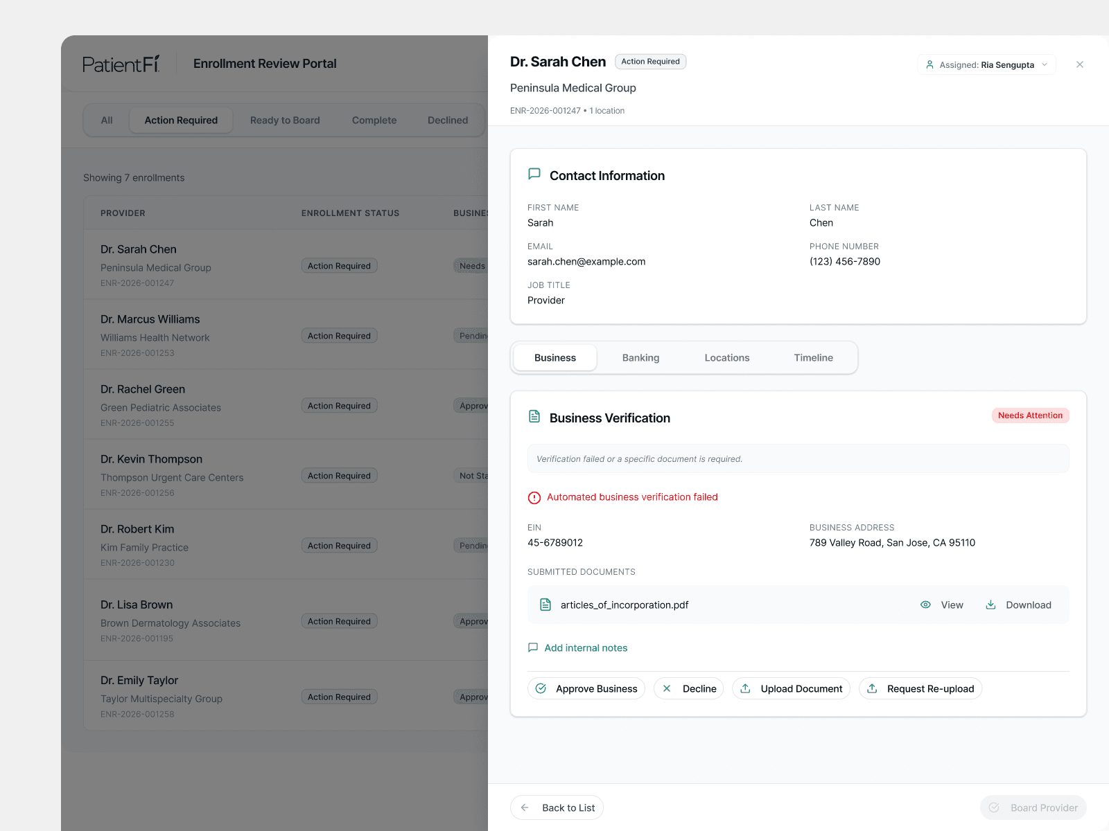 PatientFi’s provider enrollment process was creating significant friction for providers and internal teams. Enrollment relied on manual verification, email-based follow‑ups, and CRM notes, resulting in long wait times, poor visibility, and high drop‑off.