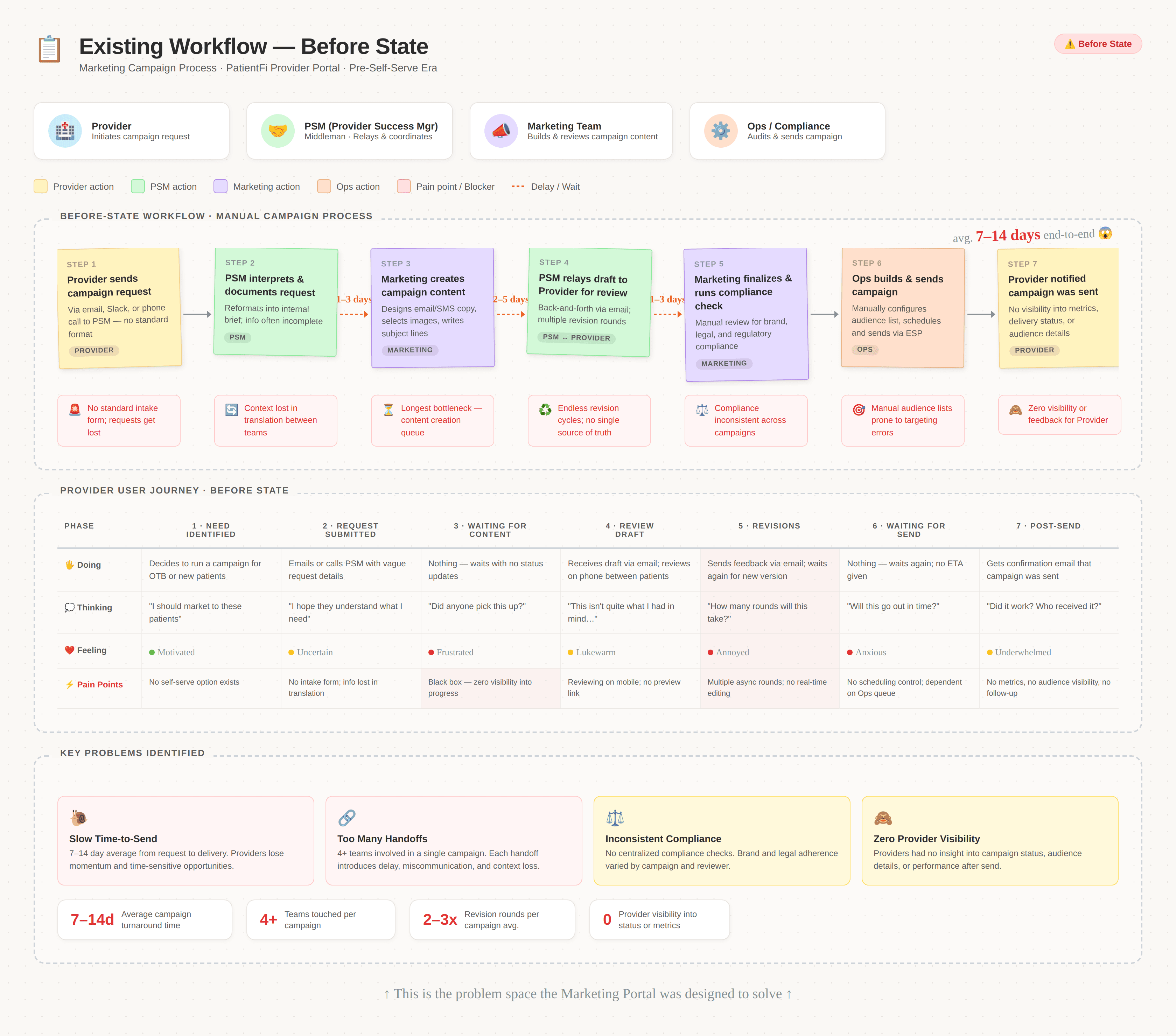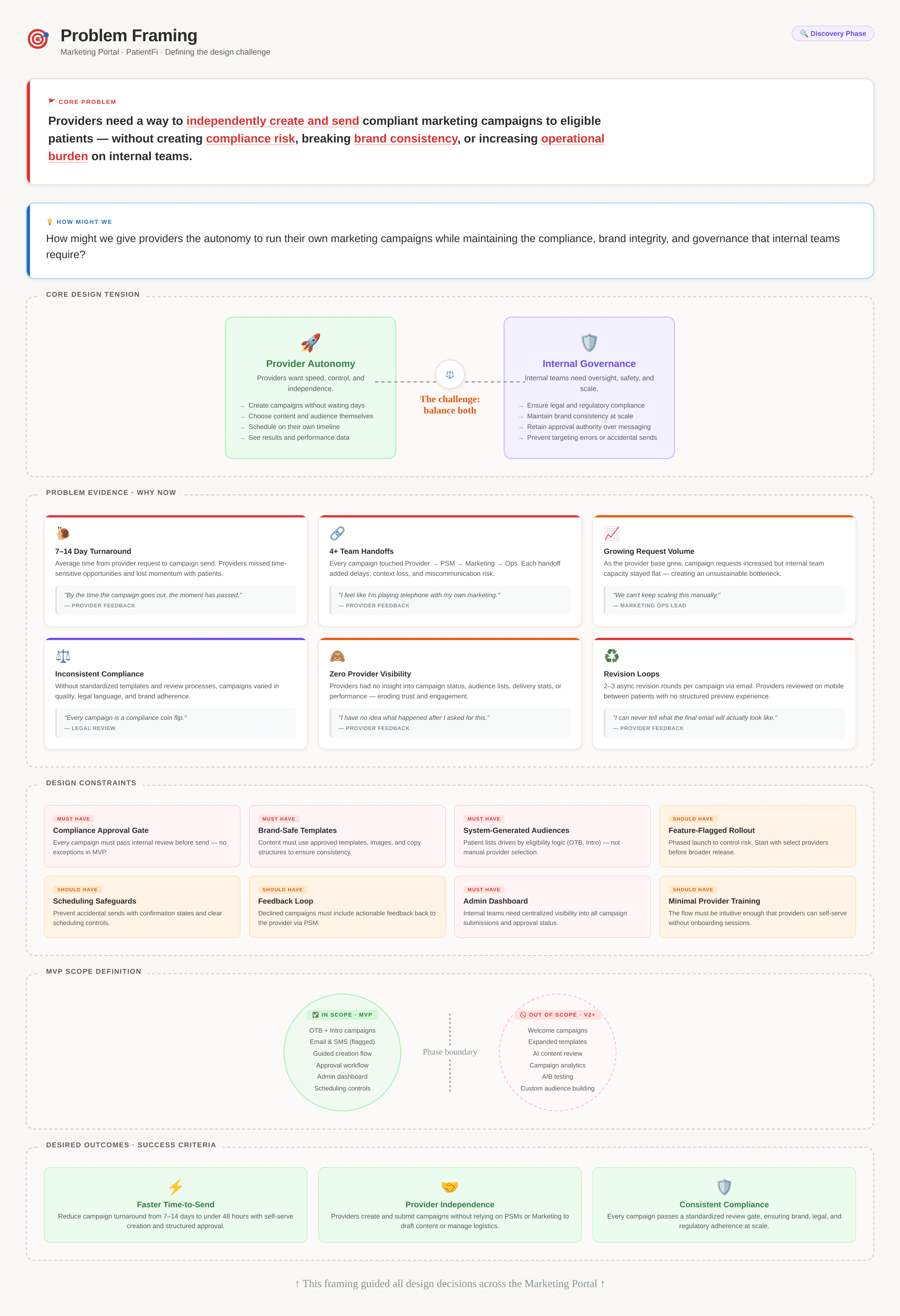 Prior to this project, providers relied on internal teams to execute marketing campaigns. Requests were handled manually, leading to delays, inconsistencies, and compliance concerns.